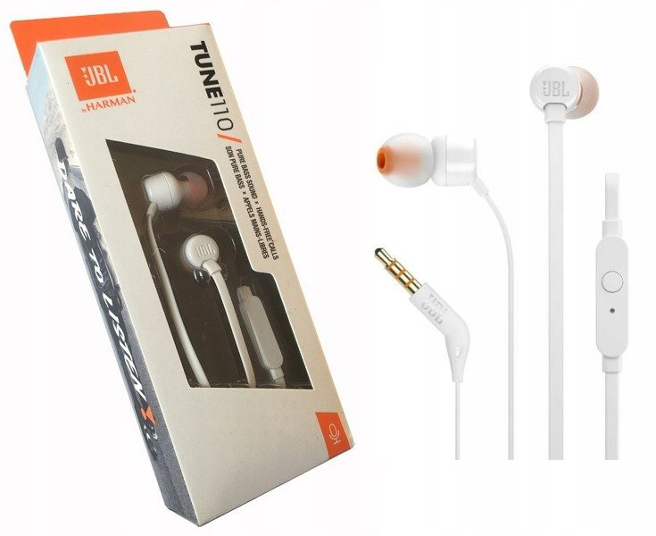 JBL in Ear Headphones with microphone JBLT110WHT, white