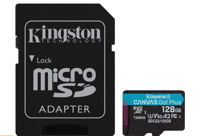Kingston Micro SDXC Card 128GB UHS-I U3 V30 Class 10 170MB/s Canvas Go Plus with Adapter