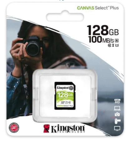 Kingston SDXC Card 128GB UHS-I Class 10 100MB/s Canvas Select Plus