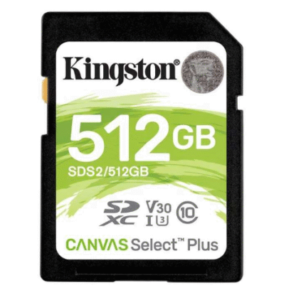 Kingston SDXC Card 512GB UHS-I Class 10 100MB/s Canvas Select Plus